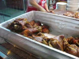 ไป ถึงไม่ต้องสั่งเพราะทั้งร้านขายแต่ขาหมู ร้านจะดูจำนวนคนก่อนที่จะเลือกขนาดของขาหมูให้ เขาขายทีละขา ไปคนเดียวก็ต้องสั่ง 1 ขา เหลือก็ห่อกลับบ้าน