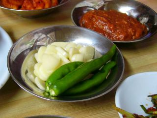 ผัก ที่ขาดไม่ได้คือ กระเทียมและพริก