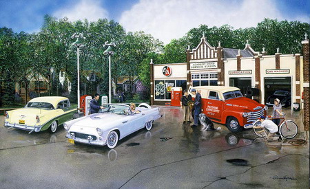 แก้ เครียดจากน้ำมันแพง ด้วยการชมภาพปั๊มน้ำมันซะ (จะหายเครียดมั๊ยนี่) การสร้างปั๊มเก่าๆ เขายังไม่ดูน่าเบื่อเหมือนสมัยนี่ ที่ทำอะไรต้องเป็นมาตรฐานเดียวกัน เหมือนๆกัน เพื่อแสดงเอกลักษณ์ แต่ก่อนตัวสถานีจะไม่ได้เน้นที่ส่วนเติมน้ำมัน ทำเป็นลานโล่งธรรมดา ตัวสถานีหรือที่ทำงานก็เป็นอาคารหลังเล็กๆ แต่ก็มีรูปแบบต่างๆ น่าสนใจดี